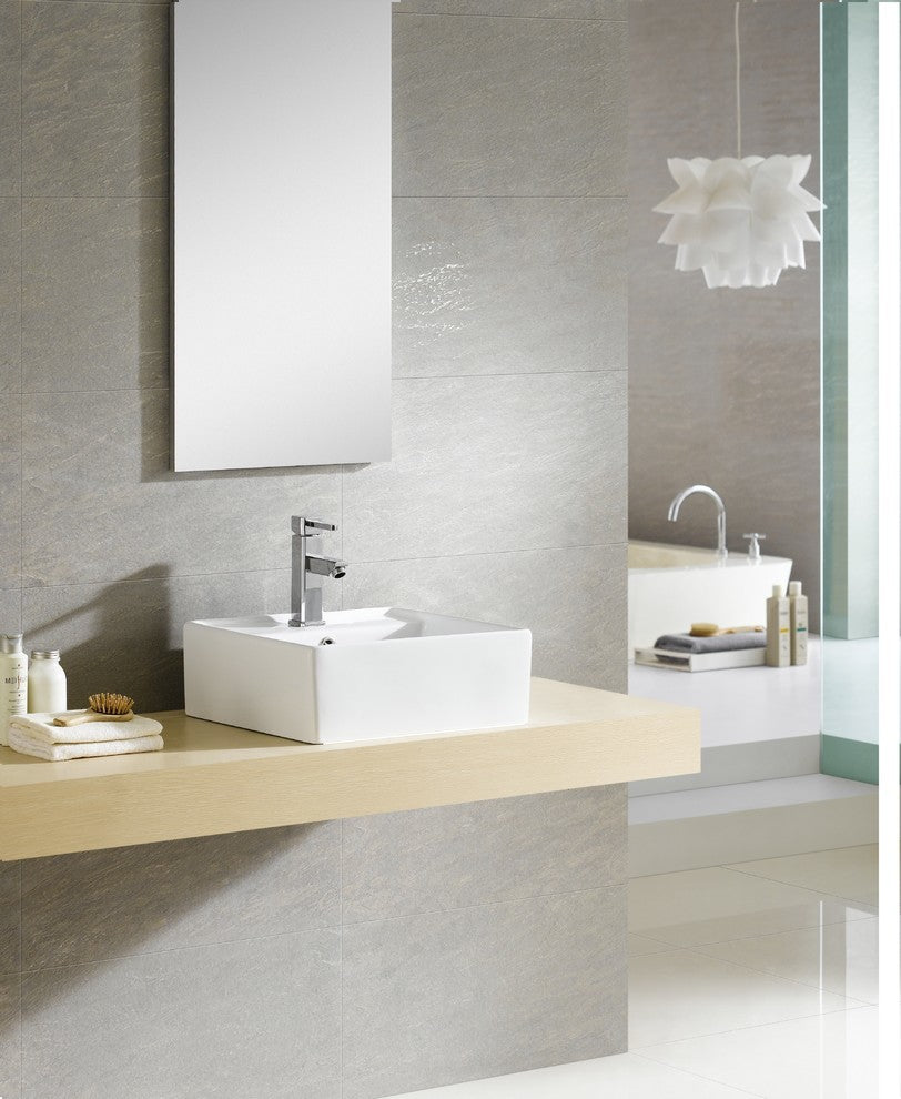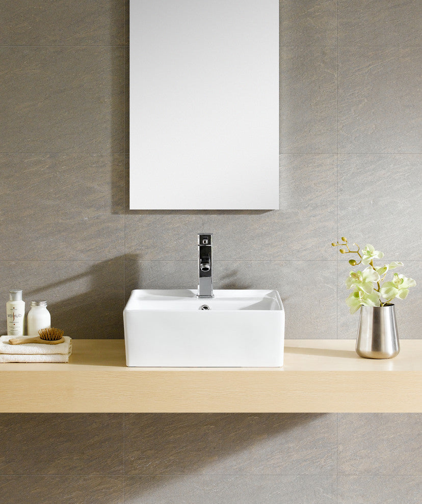 Bring added elegance to your bathroom with this Fine Fixtures modern vessel sink. A welcoming addition to any bathroom or powder room, constructed of durable and stain resistant vitreous china, this white sink features sleek, deep sides and a modern design. Its simple yet fashionable appearance is sure to leave a lofty impression on your bathroom.- With pre-drilled faucet hole- To install with standard vessel faucet - Sleek smooth finish great feel and easy clean- Fits standard drain hole size of 2 3/8" With overflow - Vessel is not finished in the back - Faucet not included- Designed to install above counter