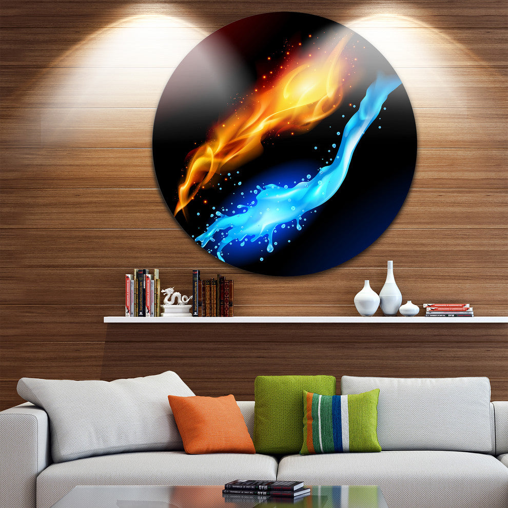 Fire And Water, Contemporary Art Round Wall Art, 11"