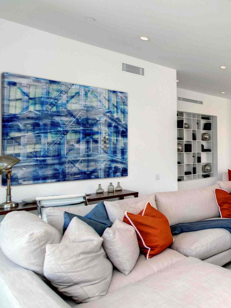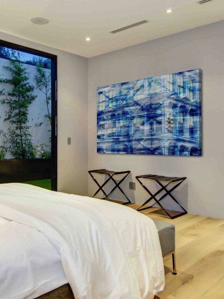 Striking and unique, the "Fire Escapes" Print on Canvas by Parvez Taj will bring your walls to life. Printed on canvas, this 60 inch wide by 40 inch tall contemporary artwork will make a statement in any living room, dining room, or bedroom.- Fine art canvas print by Parvez Taj- Professionally hand stretched- Gallery wrapped in sustainable, non-warping wood- Arrives ready to hang- Made in the USA- Includes a certificate of authenticity- Artist signature on the front