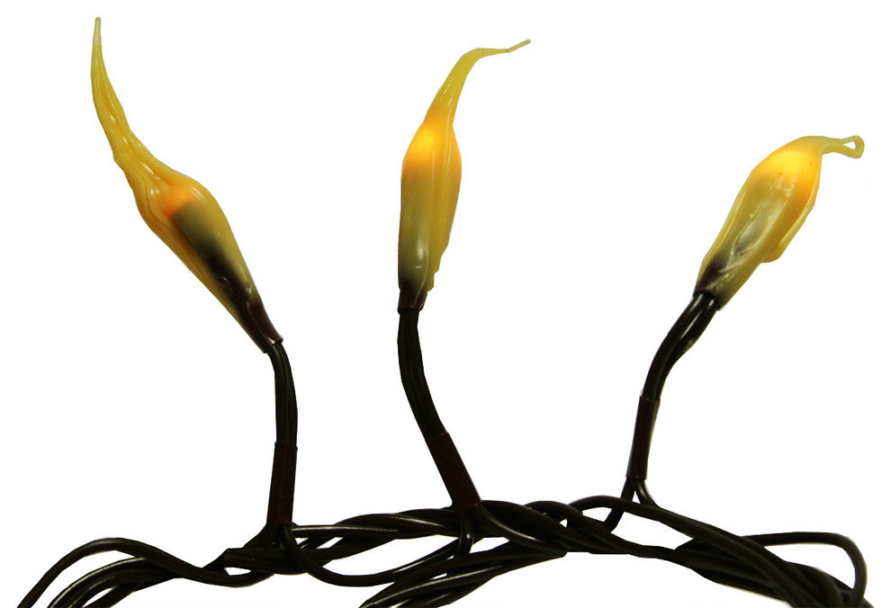 Fireside Amber Micro Silicone Flame Bulb Christmas Lights, Brown Wire, 100 Bulb