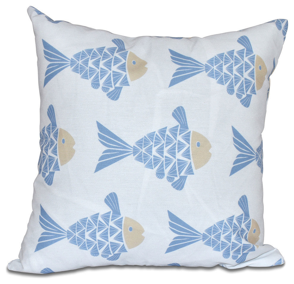 Fish Tales, Animal Print Pillow, Blue, 18"x18"