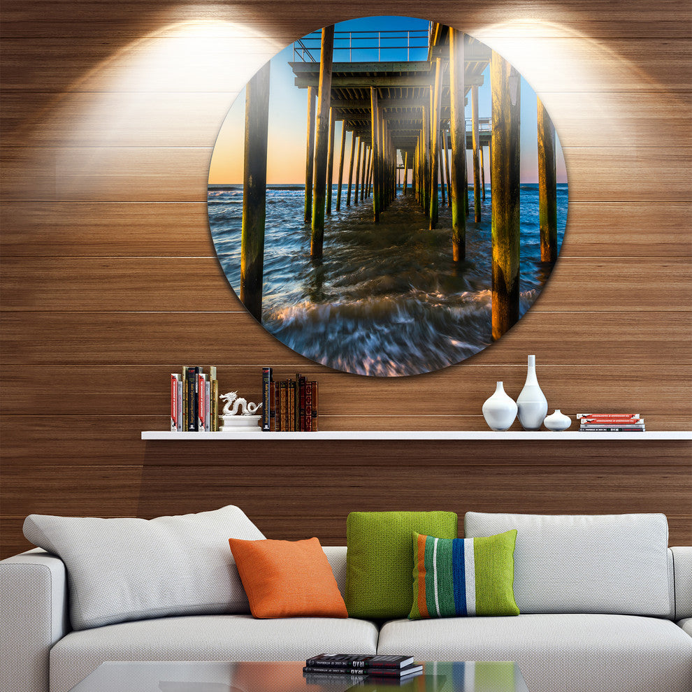 Bring Contemporary Abstraction to your home with this large Circle Metal wall art. This Fishing Pier and Waves at Atlantic Sea Metal Artwork makes it the focal point of any room or office.