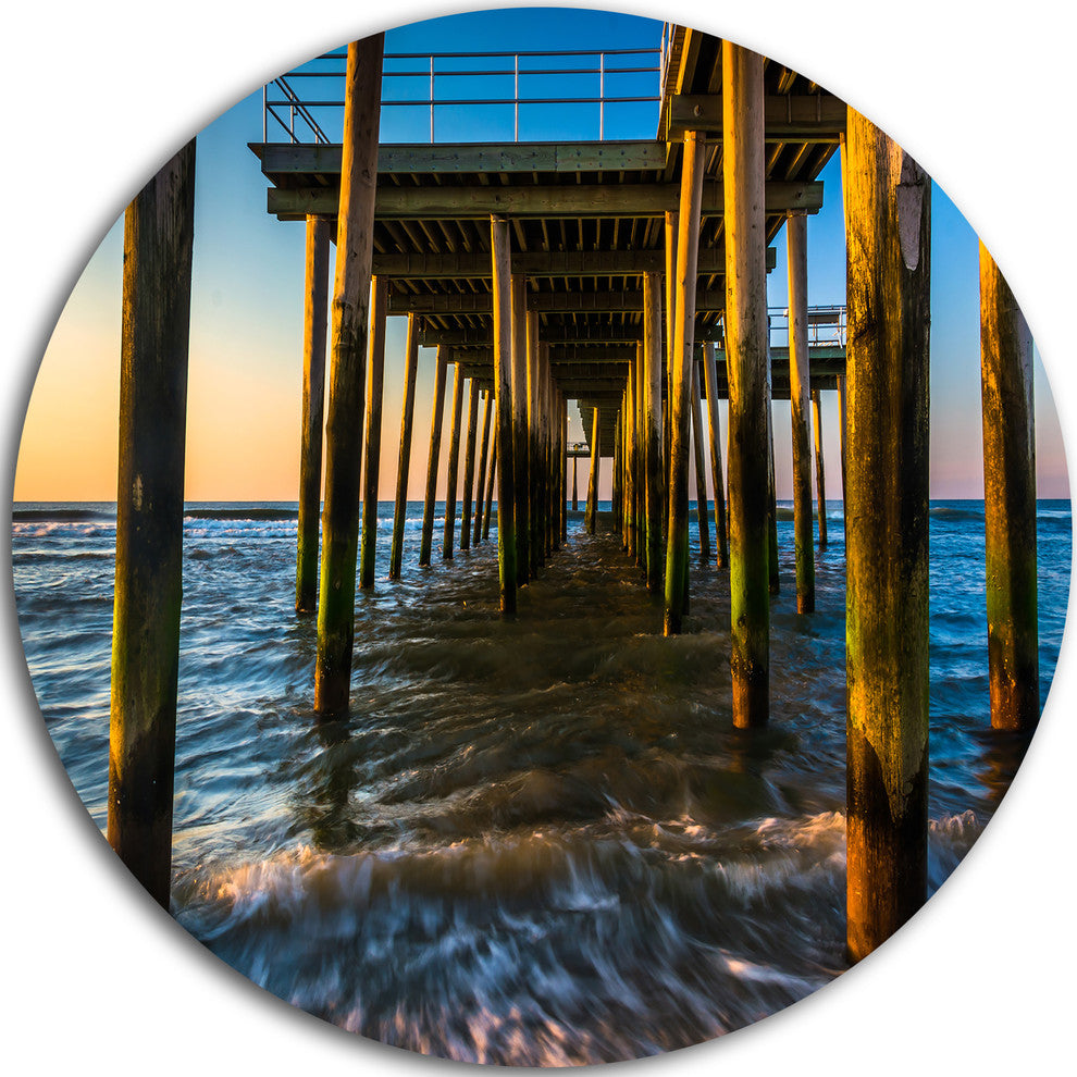 Bring Contemporary Abstraction to your home with this large Circle Metal wall art. This Fishing Pier and Waves at Atlantic Sea Metal Artwork makes it the focal point of any room or office.