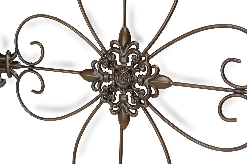 Add some texture to an empty bedroom or wall with the Fleur-de-Lis Decorative Wall Cross. Featuring intricate details and a gorgeous, bronze finish this industrial yet delicate cross is an eye-catching addition to any space. With attached hooks for easy hanging, and finely crafted fleur-de-lis accents on each point, the Fleur-de-Lis Decorative Wall Cross is perfect as either a festive, seasonal piece or year-round decor. For a complete, cohesive look, pair the Fleur-de-Lis Decorative Wall Cross with traditional, rustic or industrial pieces.