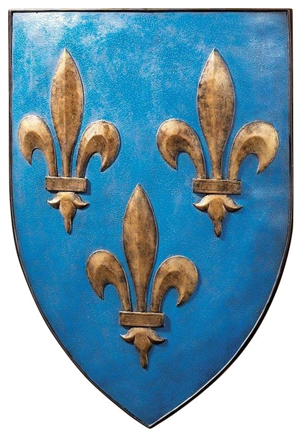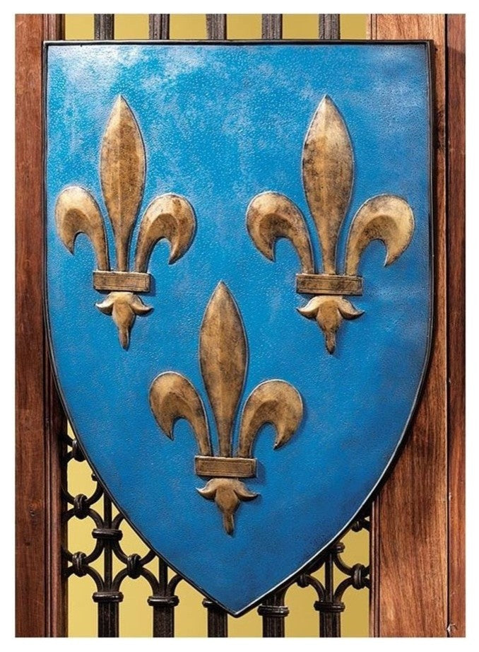 Show your royal colors with this heraldic wall shield emblazoned with France''s legendary fleurs-de-lis! Cast in quality designer resin, our Toscano-exclusive escutcheon is hand-painted one piece at a time and finished with the antique patina of historic statement pieces. 12.5"Wx1"Dx17"H. 4 lbs.