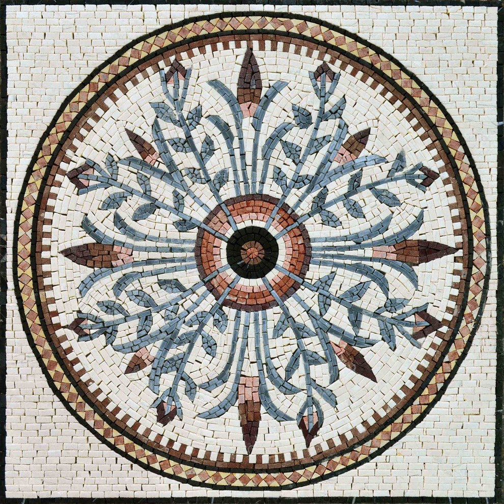 The beautiful red and gray Camille floral mosaic art panel makes an eye-pleasing addition to your walls or decorative tile floors. Showcasing a bountiful garden of redblossoms framed in colorful dentil and diamond borders, this mosaic artwork square comes with a mesh backing to make mounting a breeze. Or frame it for your mosaic arts collection - the decorative possibilities are endless!