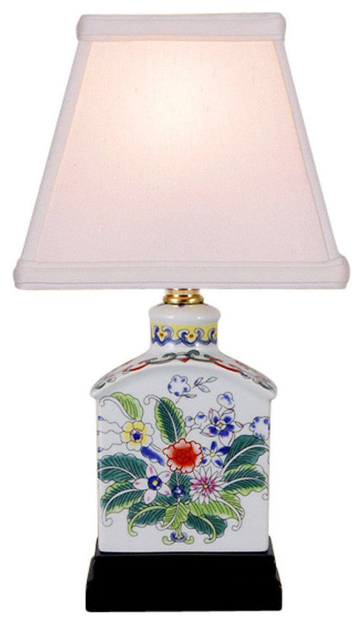 Floral Style Porcelain Tea Caddy Table Lamp 13"