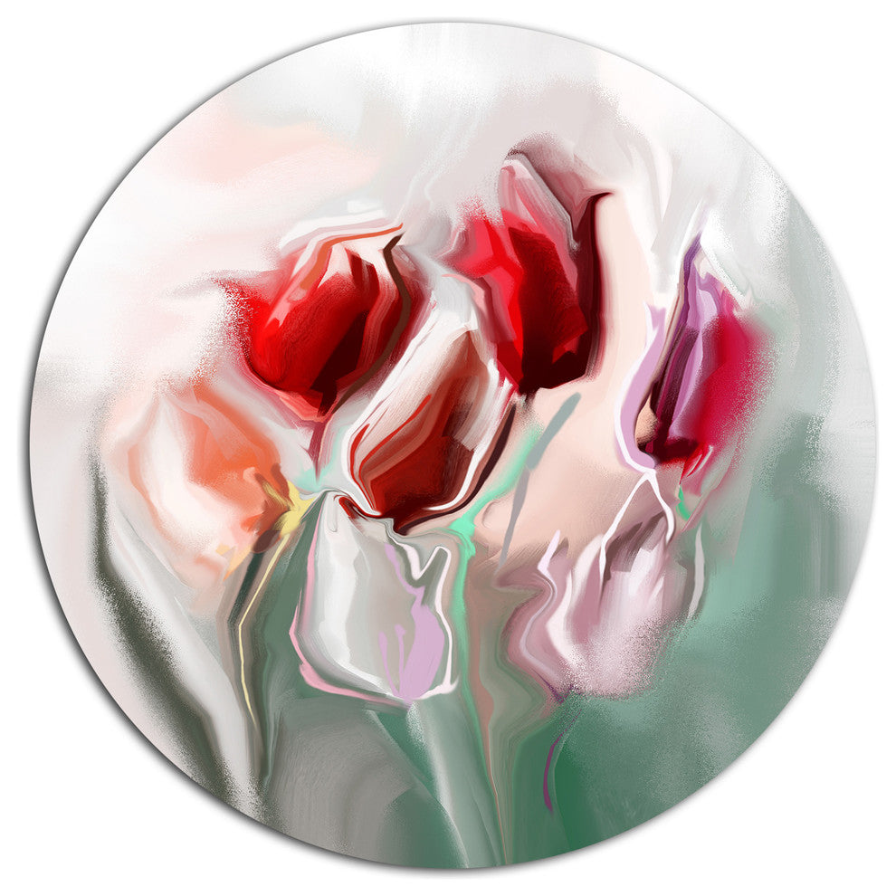 Bring Contemporary Abstraction to your home with this large Circle Metal wall art. This Floral Watercolor Illustration Metal Artwork makes it the focal point of any room or office.