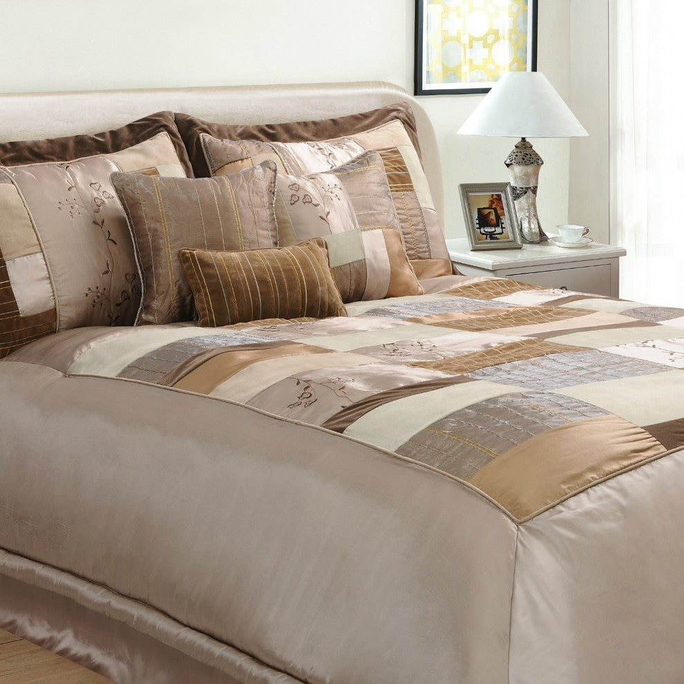 Florence will bestow an elegant and romantic feel to your bed. Floral embroideries combine with faux silk and faux suede to provide a luxurious look normally found only with the most expensive of comforter ensembles. The comforter and shams are overfilled with high quality soft polyester, and each size is given a few more inches to be sure the bed is well covered.