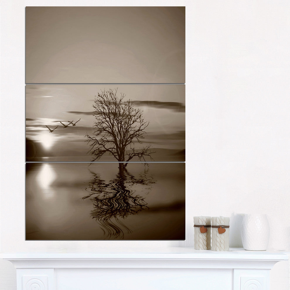 "Flying Birds and Lonely Tree" Metal Landscape, 3 Panels, 28"x36"