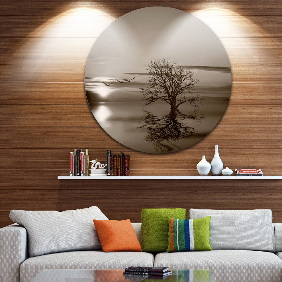 Flying Birds And Lonely Tree, Round Wall Art Landscape, 36"