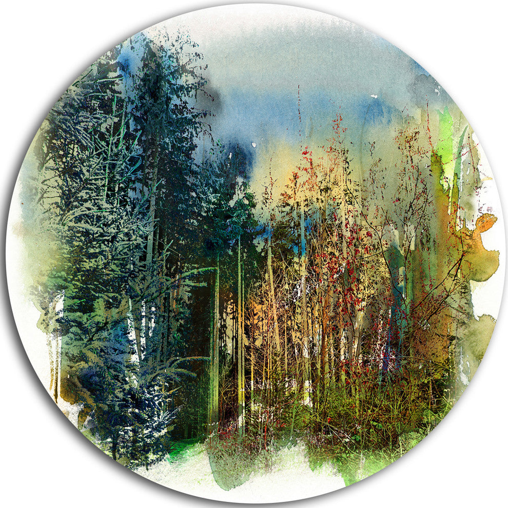 Forest Motif Watercolor, Landscape Painting Disc Metal Wall Art, 23"