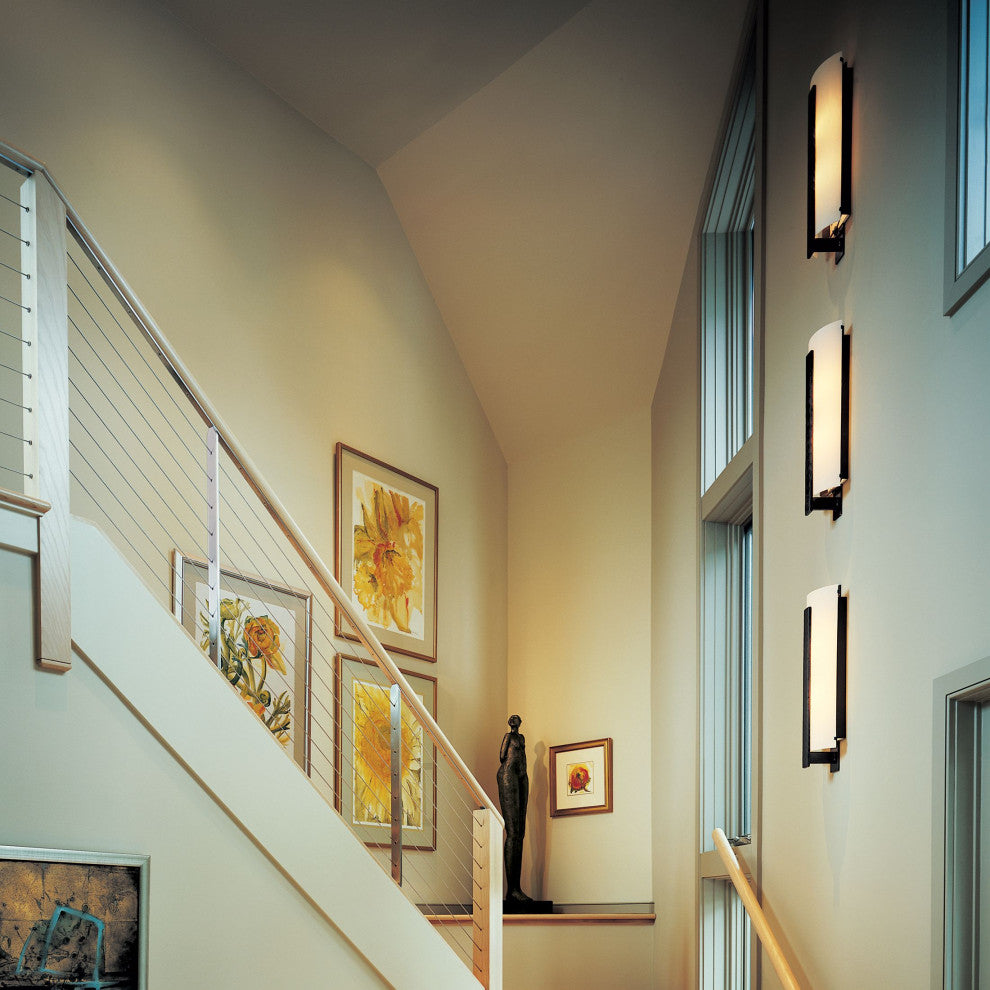 A textured, forge-worked vertical bar makes clear where this sconce''s name comes from. What''s also clear, on closer look, is the craftsmanship that goes into this seemingly simple wall sconce which features white swirl art glass. Handcrafted by the artisans at Hubbardton Forge in Vermont.