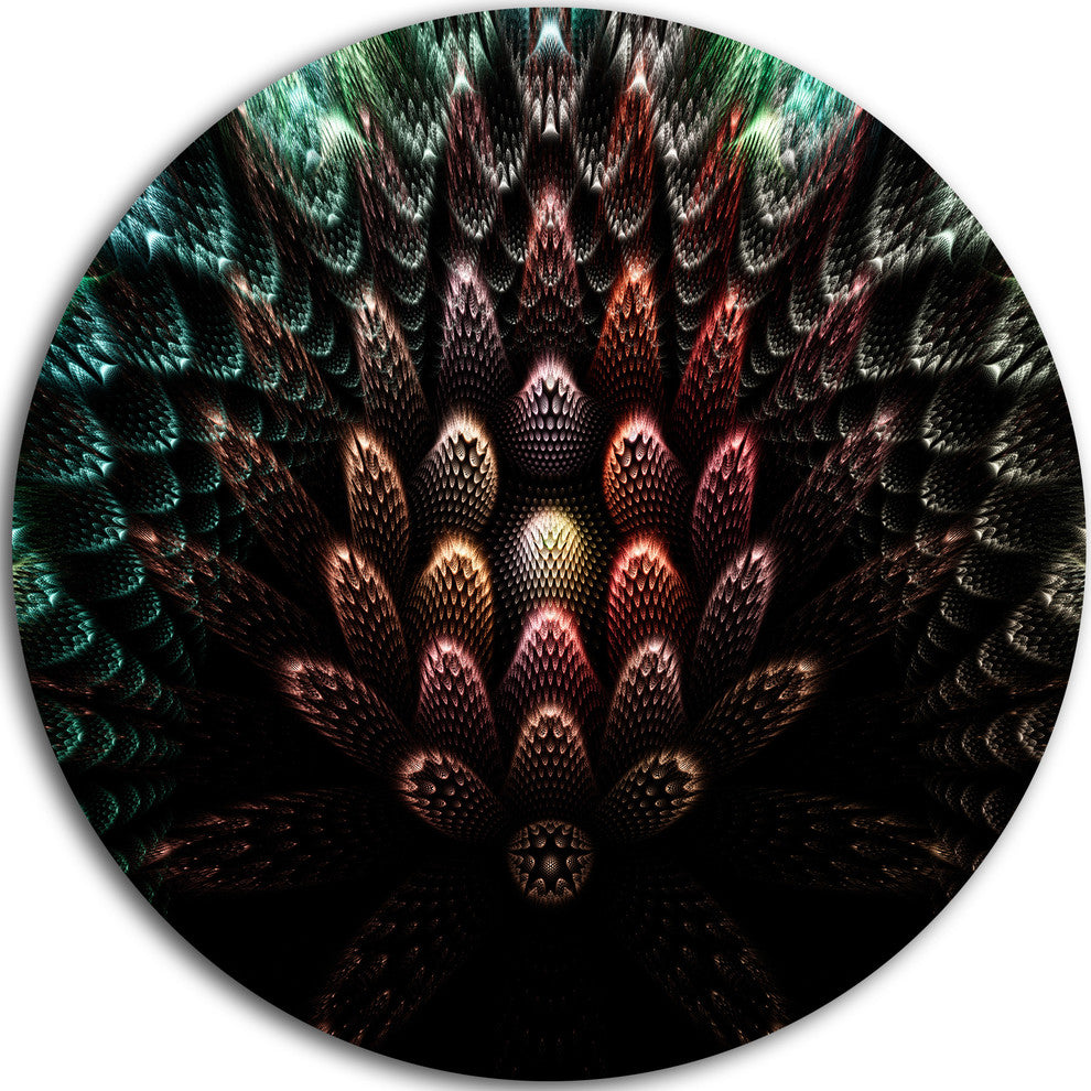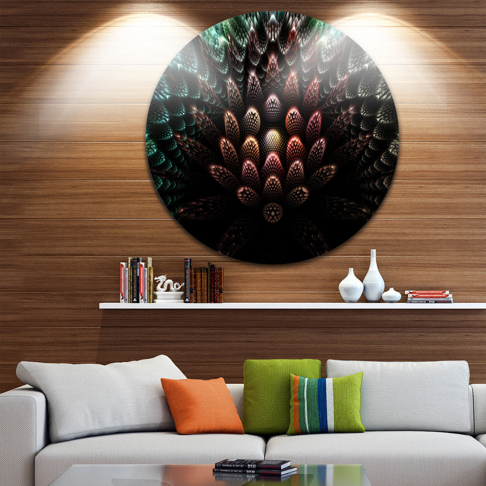 Bring Contemporary Abstraction to your home with this large Circle Metal wall art. This Fractal 3D Flower Fantasy Metal Artwork makes it the focal point of any room or office.