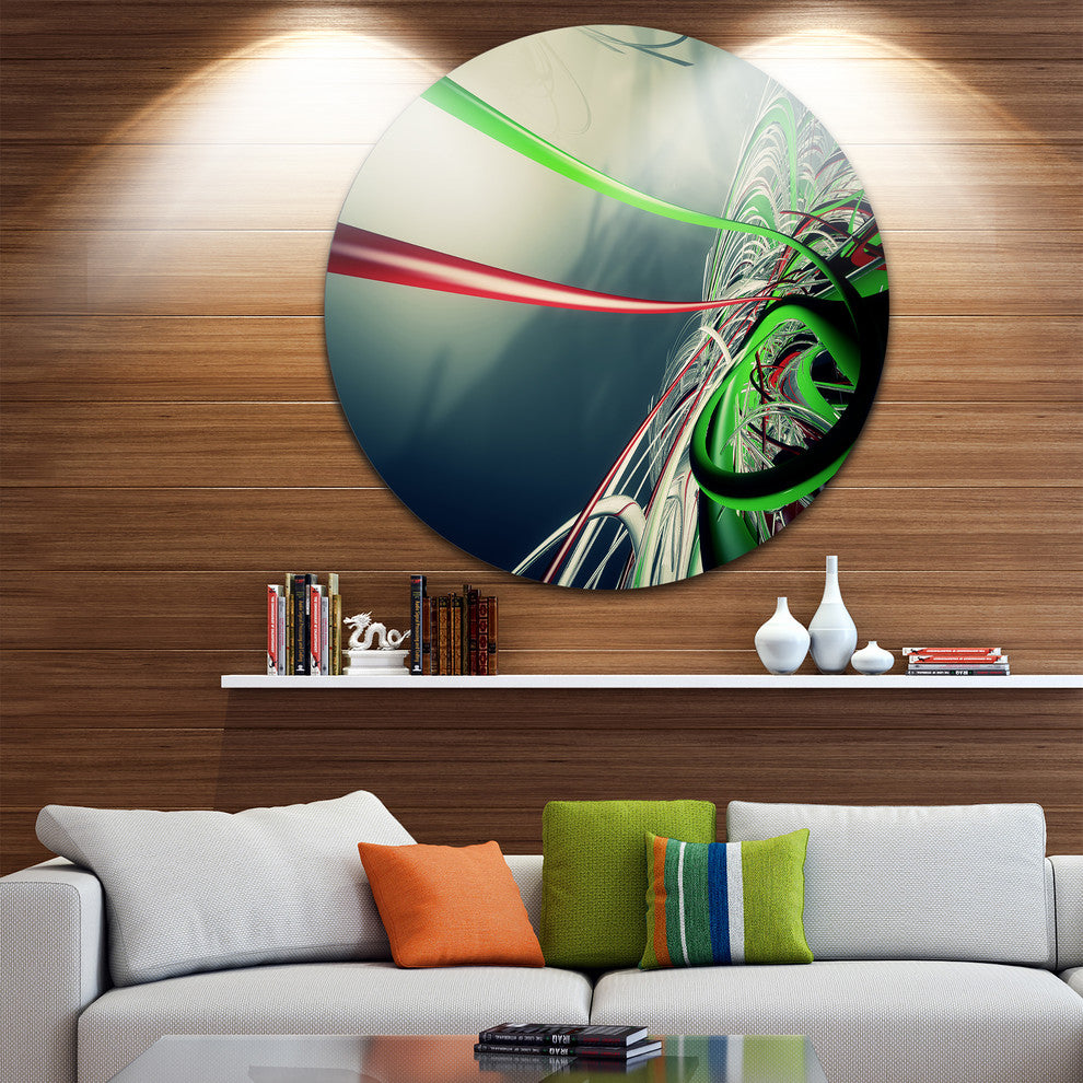 Bring Contemporary Abstraction to your home with this large Circle Metal wall art. This Fractal 3D Green Stripes Metal Artwork makes it the focal point of any room or office.