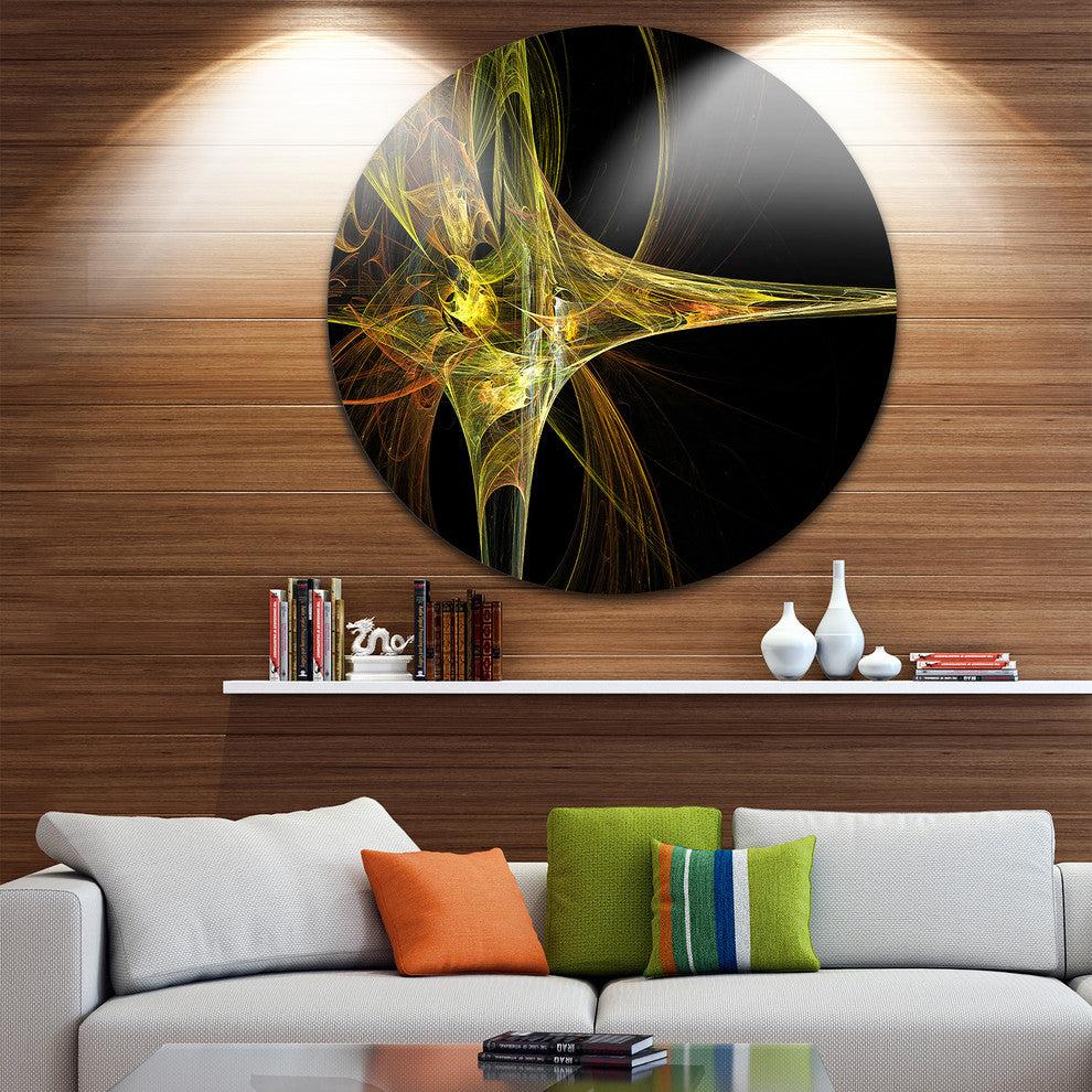 Fractal Artwork Yellow, Abstract Digital Art Disc Metal Wall Art, 23"