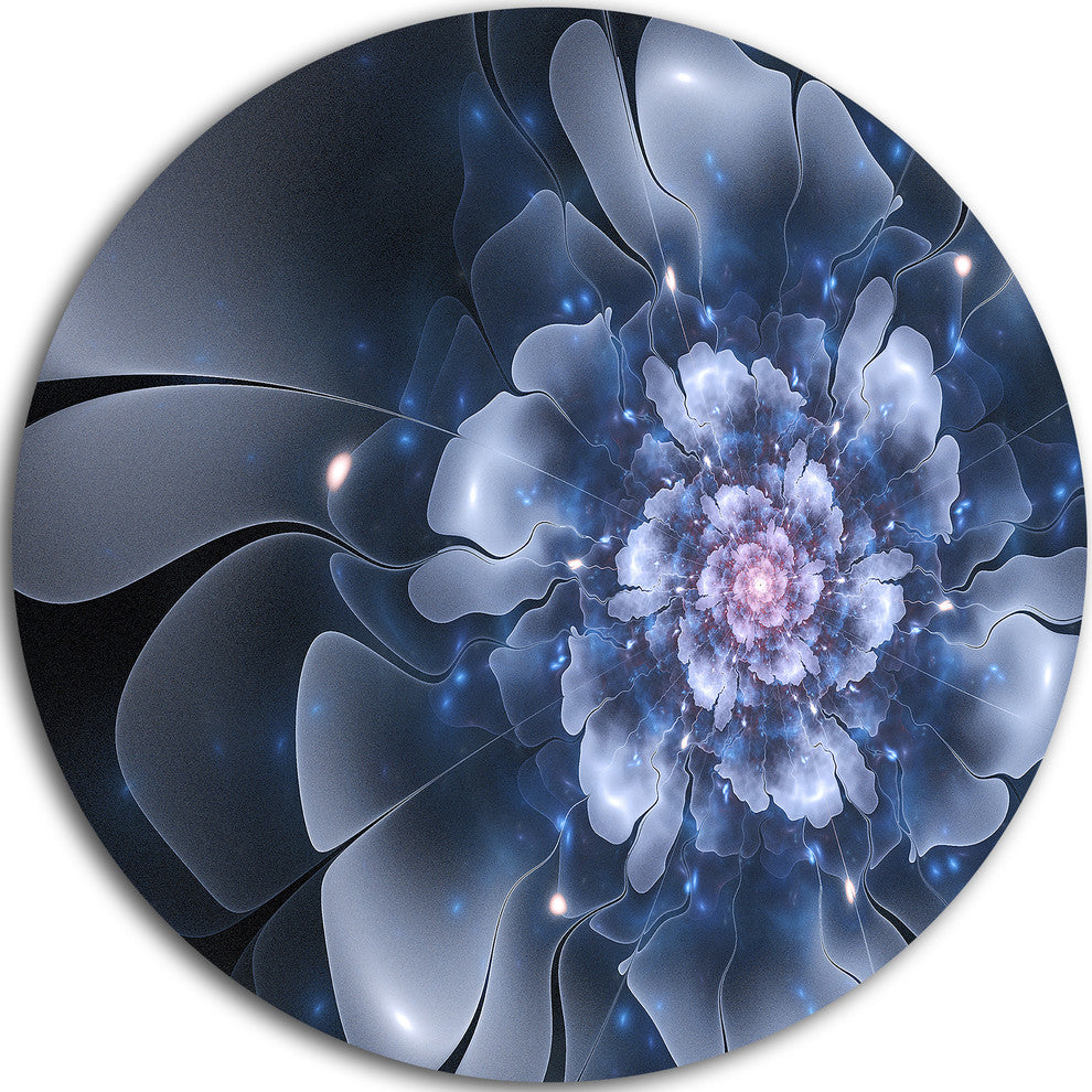 Bring Contemporary Abstraction to your home with this large Circle Metal wall art. This Fractal Flower Light Blue Petals Metal Artwork makes it the focal point of any room or office.