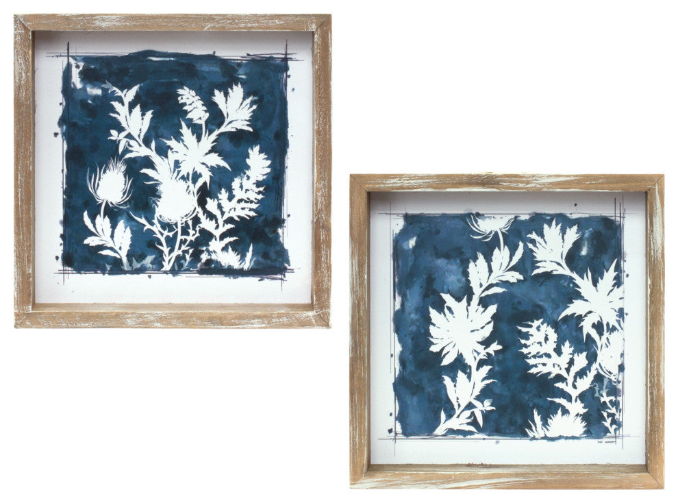 Adorn your walls with this stunning set of Framed Floral Prints. Featuring two assorted designs, the deep blue tones paired with the white-washed faux wooden frames is the perfect combination to create a beautiful spring display. They can be displayed together to make a statement or throughout the home to accent your other decor. Each print measures 8" x 8". 1.5W8D8H