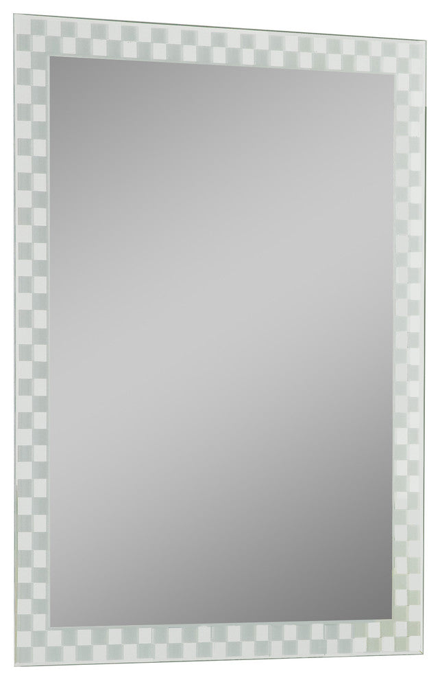 Mirror mirror on the wall this is the most fun and modern of them all. This frameless wall mirror is perfect for your hallway, living room, den or bathroom. Features a checkers design and beveled edges.- Crafted of thick, strong 3/16 glass and metal - Double coated silver backing with seamed edges- Mounting hardware included comes ready to hang vertically and horizontally.- Great for Bathroom mirror, Vanity mirror, Living Room mirror or Bedroom mirror- Center mirror measures ~15.75"x23.5"