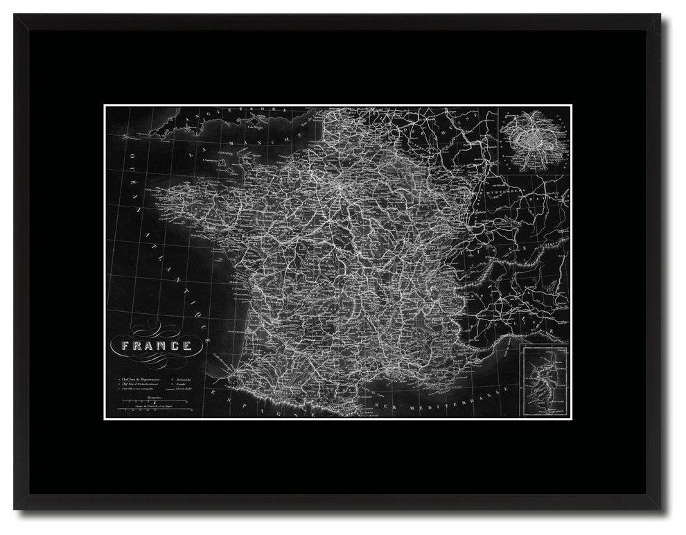 France Paris Vintage Monochrome Map Canvas, 16"x21"