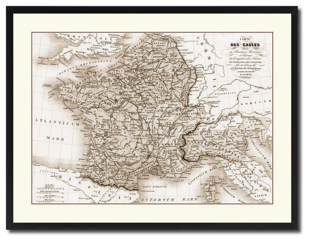 France Vintage Sepia Map Canvas Print, 28"x37"