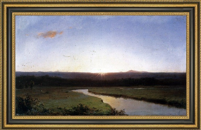 16" x 24" Frederic Edwin Church Sunrise (also known as the Rising Sun) framed premium canvas print reproduced to meet museum quality standards. Our Museum quality canvas prints are produced using high-precision print technology for a more accurate reproduction printed on high quality canvas with fade-resistant, archival inks. Our progressive business model allows us to offer works of art to you at the best wholesale pricing, significantly less than art gallery prices, affordable to all. This artwork is hand stretched onto wooden stretcher bars, then mounted into our 3 3/4" wide gold finish frame with black panel by one of our expert framers. Our framed canvas print comes with hardware, ready to hang on your wall. We present a comprehensive collection of exceptional canvas art reproductions by Frederic Edwin Church.