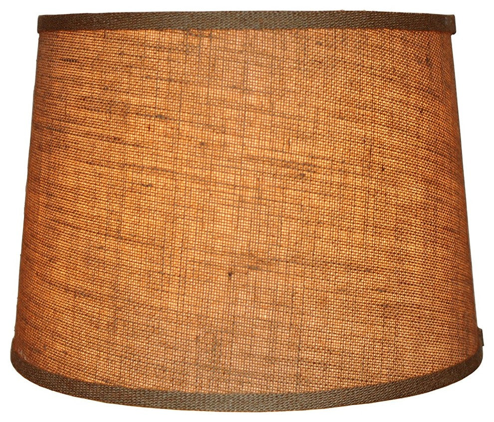 Urbanest French drum lampshade in burlap is a way to add textural light to any space. Shade measures 10" across the top, 12" across the bottom and 8 1/2" overall height Spider harp fitter works with most standard harps and lamp bases. Bulb not included.