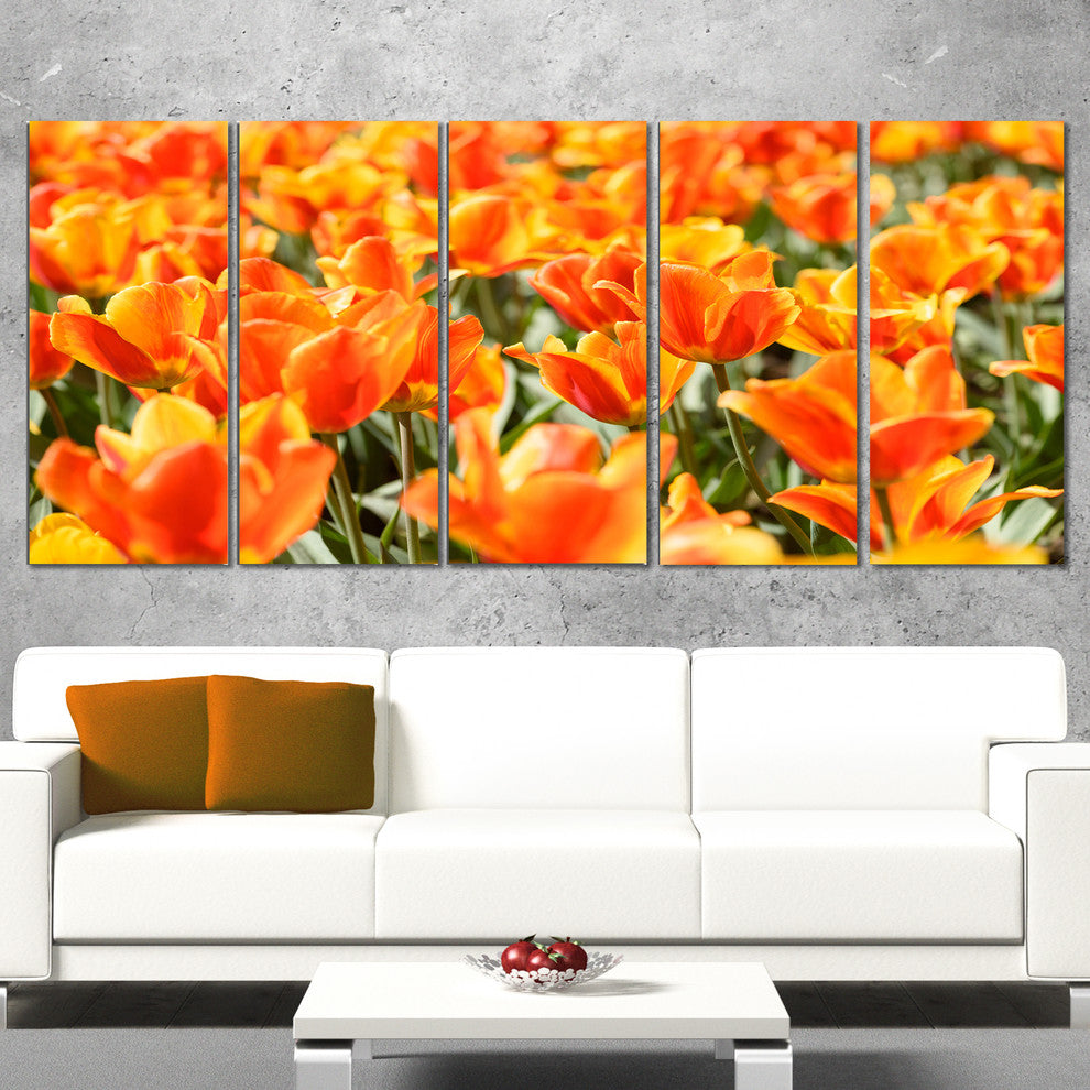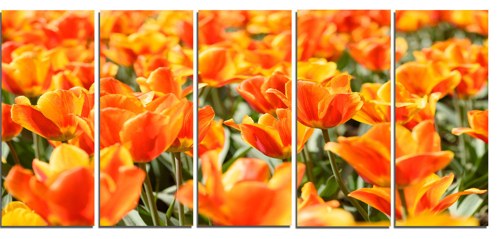"Fresh Tulip Flowers on Sunny Day" Canvas Art Print60"x28", 5-Panels