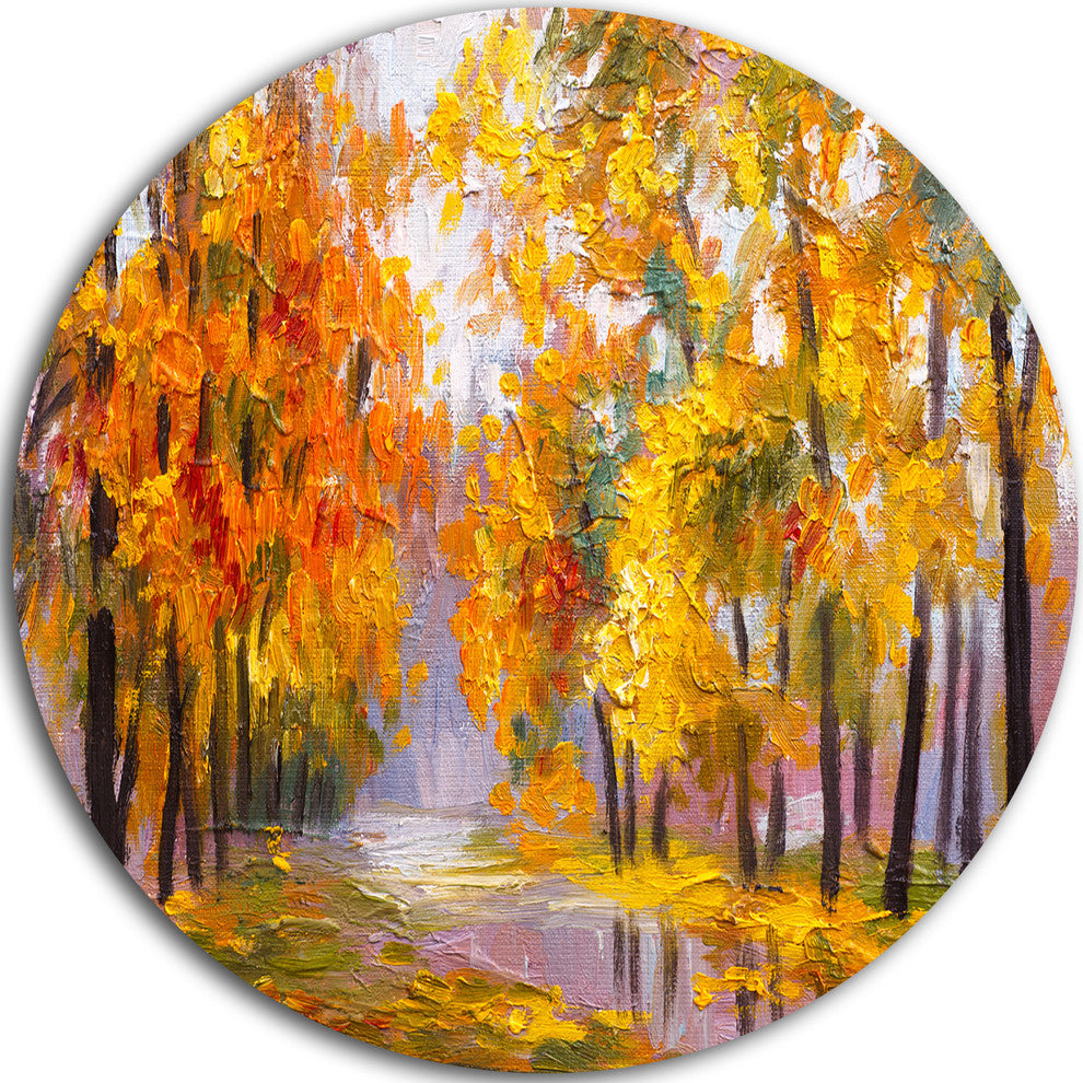 Full Of Fallen Leaves, Landscape Round Wall Art, 23"