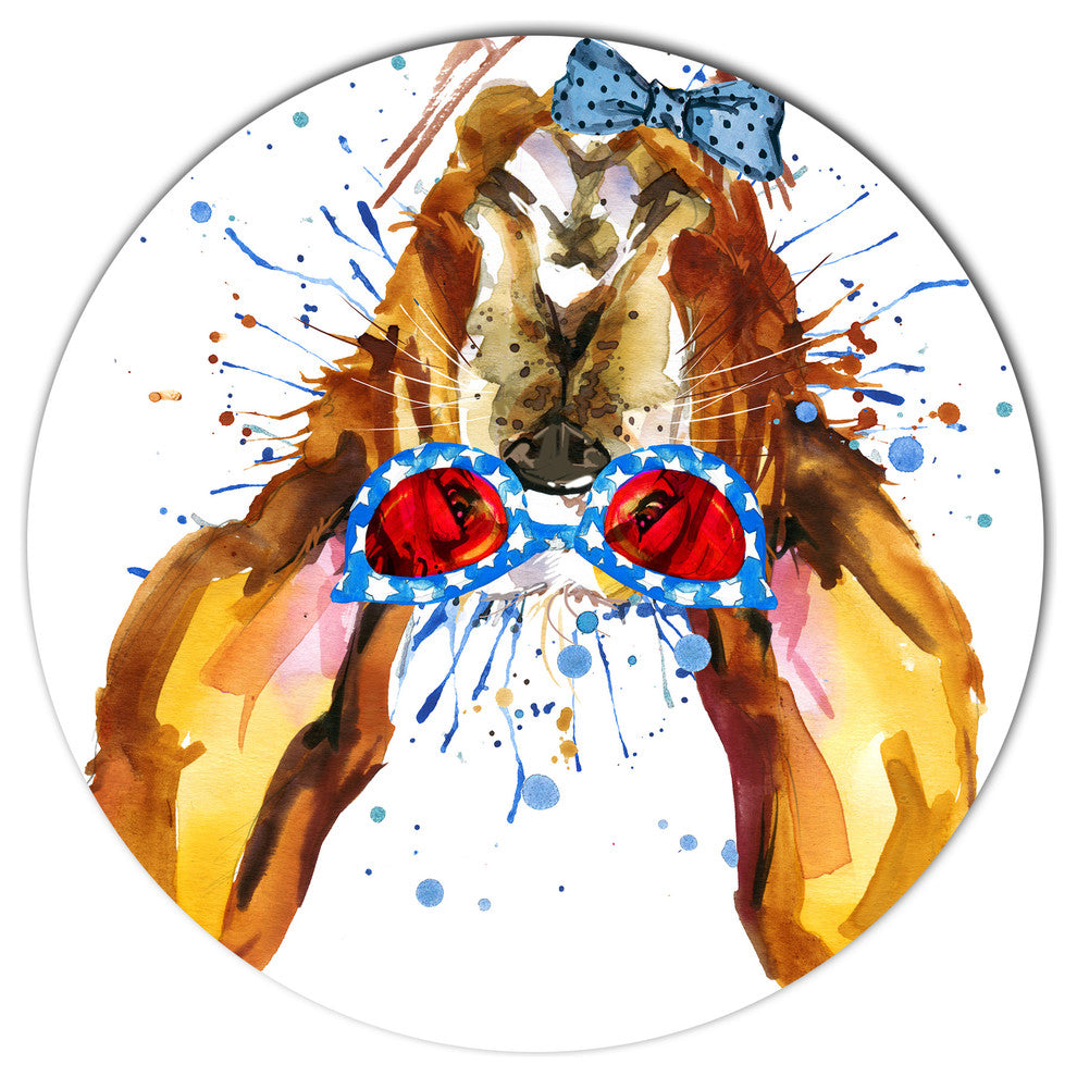 Funny Brown Dog With Glasses, Animal Large Disc Metal Wall Art, 36"