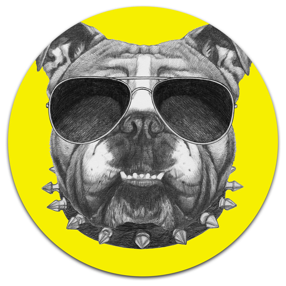 Funny English Bulldog With Collar, Animal Art Round Wall Art, 36"