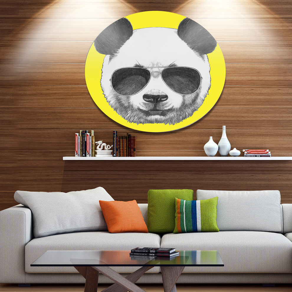 Bring Contemporary Abstraction to your home with this large Circle Metal wall art. This Funny Panda with Sunglasses Metal Artwork makes it the focal point of any room or office.