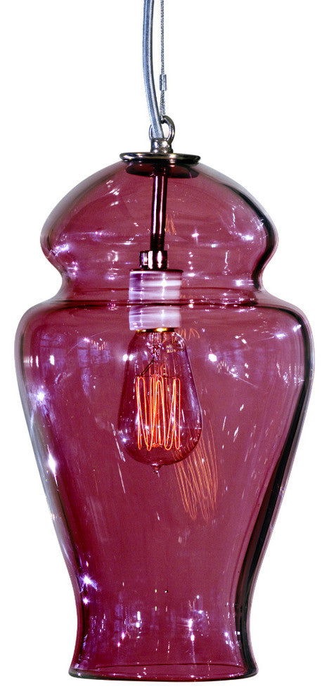 Suggestive of ancient Pompeian pottery, the Gala offers a nod to the past while providing a thoroughly contemporary lighting solution. Crafted from hand-blown glass, choose from an extensive assortment of custom colors to create your own unique pendant lamp. 8"�W X 13"�H; 5"� canopy. 60w; 120v. Edison-style filament bulb included. Ships with 6 ft. of electrical cord.