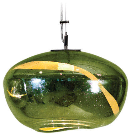 It"™s easy to make a statement with our Galaxy pendant light fixture. Boasting mirror-finished glass with a striated swirl, each pendant features an assortment of dazzling colors to choose from.This collection is created by Tempo Luxury Home in New York. The organic process of hand-blowing makes each pendant unique. 10"�W X 9"�H; 5"� canopy. 60w; 120v. Edison-style filament bulb included. Ships with 6 ft. of electrical cord.