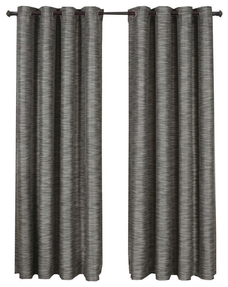 Bring modern style to your home with this gorgeous insulated curtain panel. Simply hung from any standard or decorative curtain rod, this attractive thermal-insulated curtain panel is fashioned from machine-washable polyester fabric in several colors, making the panels easy to care for. Not only are these curtains intended to keep rooms warmer in winter and cooler in summer, they are light-blocking, making them impeccable for bedroom windows.- 100% polyester- Sold individually - Blockout over 99% of light- Thermal coating backing- Hangs with standard or decorative rod - Reduces outside noise- Elegant, sophisticated woven tonal stripes- Saves on home heating & cooling- Each curtain panel has 8 grommets- Machine-washable Available Sizes for single panels Include:- 54"W x 84"L each - 54"W x 95"L each - 54"W x 108"L each Available Sizes for pairs Include:- 108"W X 84"L Pair- 108"W X 95"L Pair- 108"W X 108"L Pair