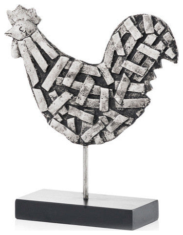 Timeless yet modern, this Gallo Futurista Strap Rooster is the perfect addition to your home decor. It features an exotic pattern and unique texture, giving it a distinct, traveled, worldly feel. Whether tucked into a bookcase or displayed on a coffee table tray, this piece will stand out and enhance your home''s style. This piece measures 3.5 inches wide by 6.5 inches deep by 29 inches tall.