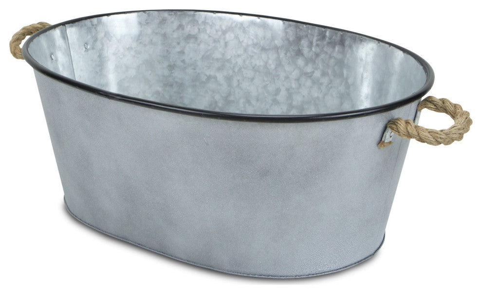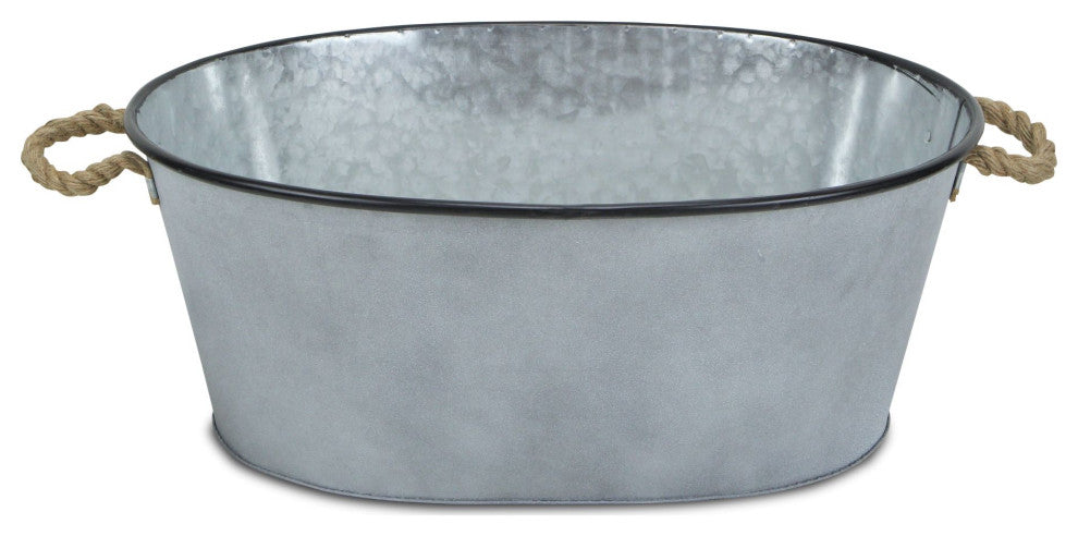 Enhance your garden or patio space with the Galvanized Metal Oval Bucket. Simple yet charming, the Galvanized Metal Oval Bucket is sleek in design and the perfect addition to your outdoor space. Crafted from brushed galvanized metal, the Galvanized Metal Oval Bucket features a striking black rim and natural rope side handles. Whether you utilize this garden bucket for storage, or simply as a decorative accent piece, the Galvanized Metal Oval Bucket will effortlessly elevate your garden decor.