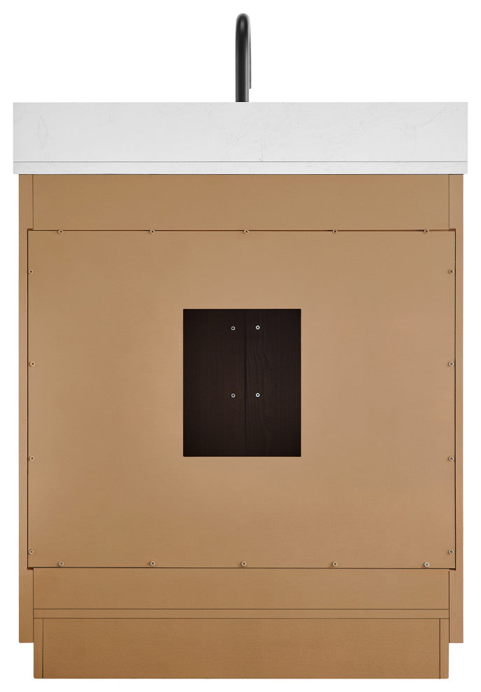 Gavino Vanity With Grain White Composite Stone Top, Light Brown/Matte Black, 30", No Mirror