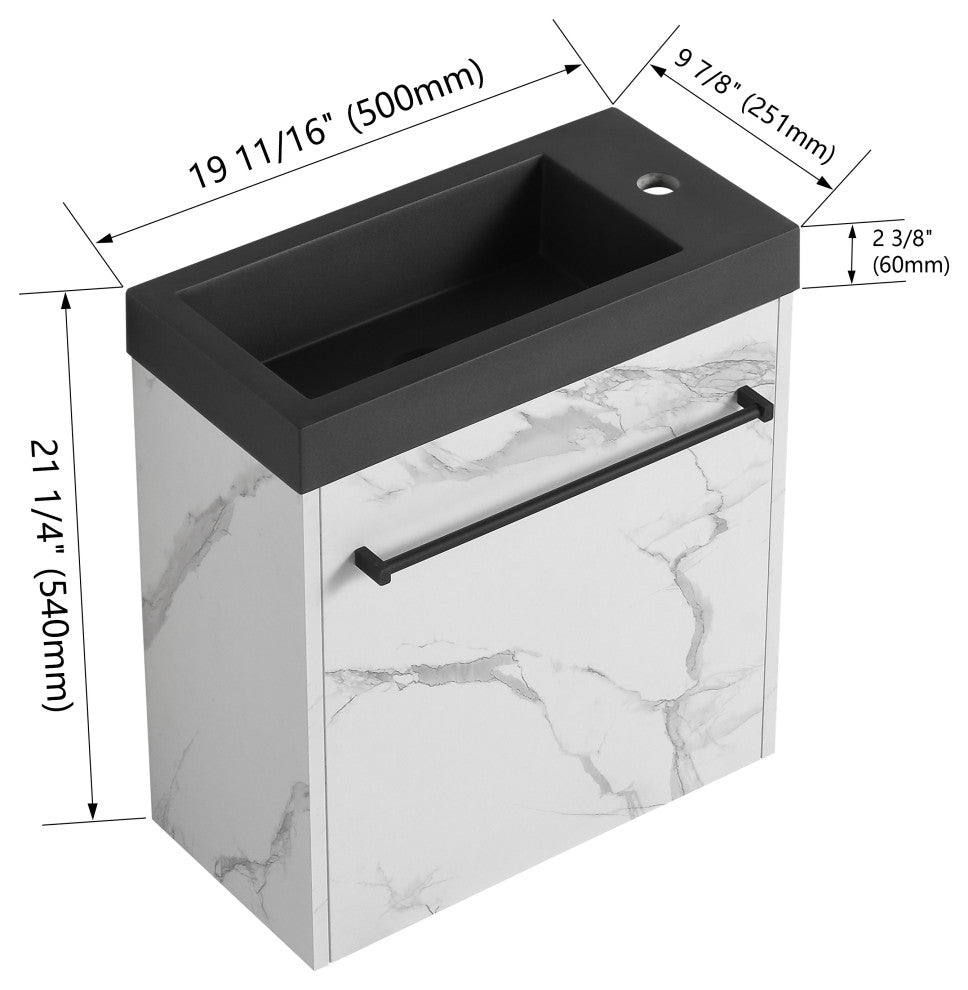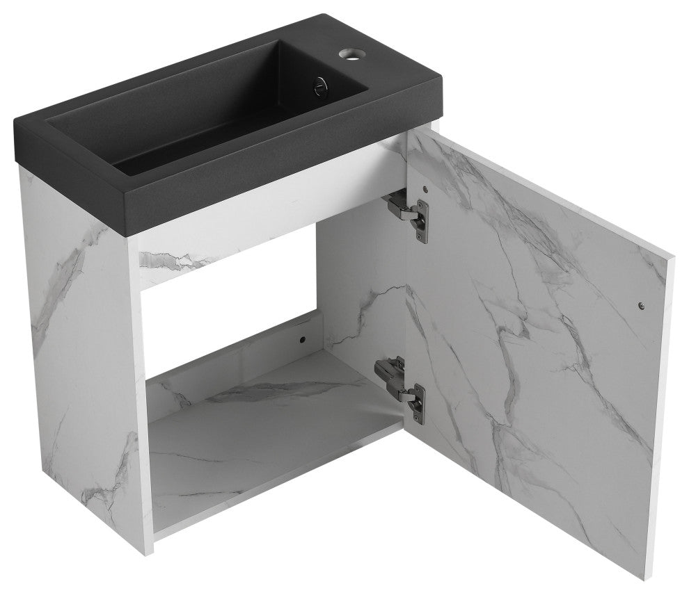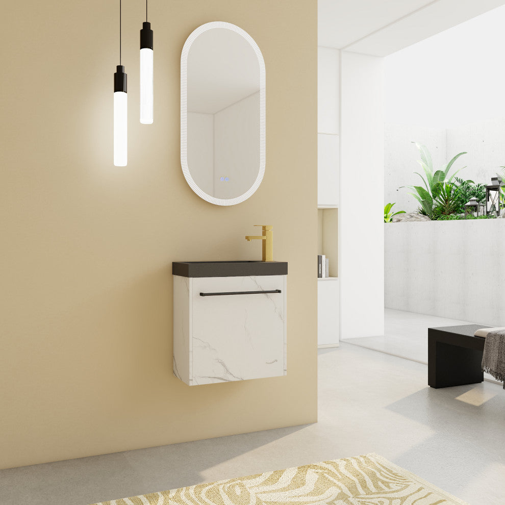 Stylish Floating Design: Elevate your bathroom''s aesthetic with our 20'''' floating wall-mounted vanity. Its sleek, contemporary design creates an illusion of space, making it perfect for small bathrooms. The integrated cabinet and basin offer a minimalist look while providing practical storage solutions for your essentials.