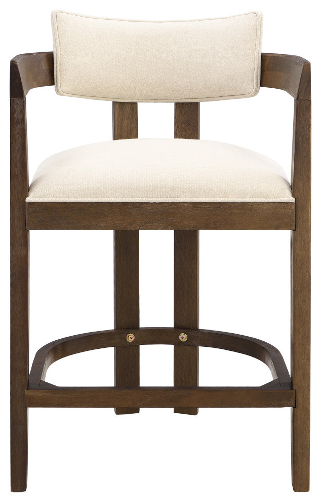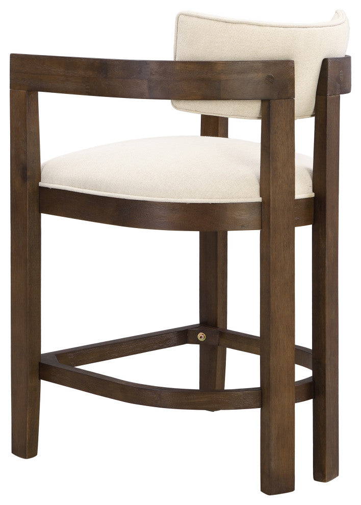 GDF Studio 26" Upholstered Counter Height Bar Stool, Set of 2, Walnut/Beige