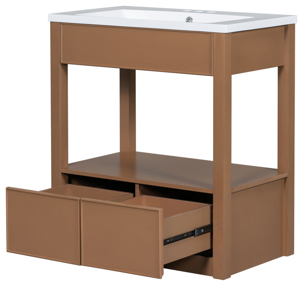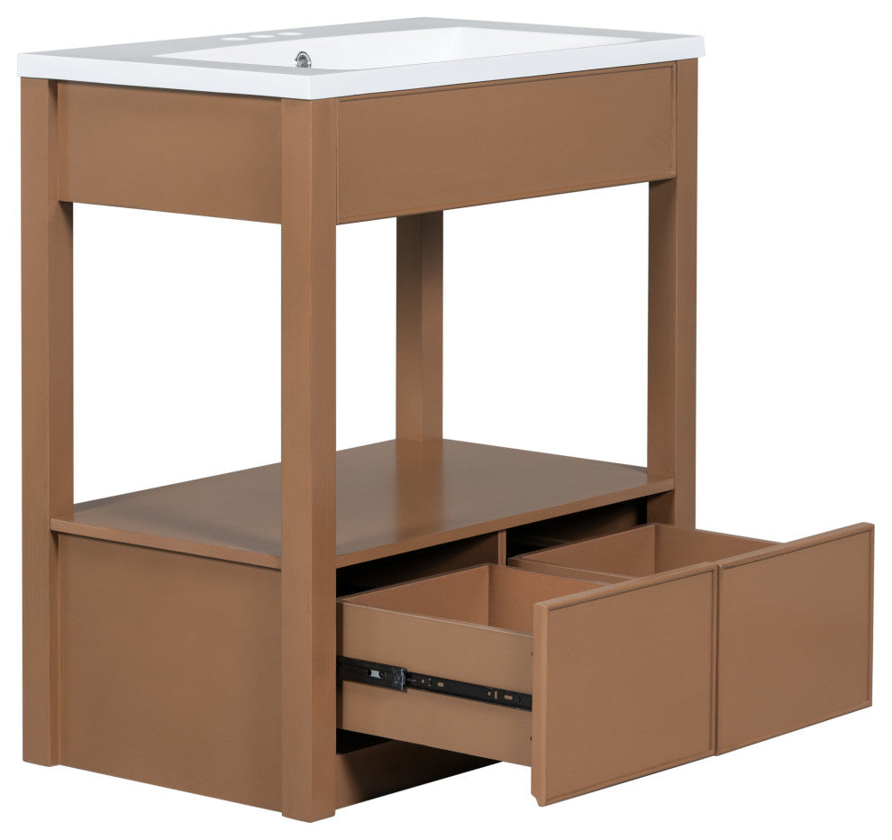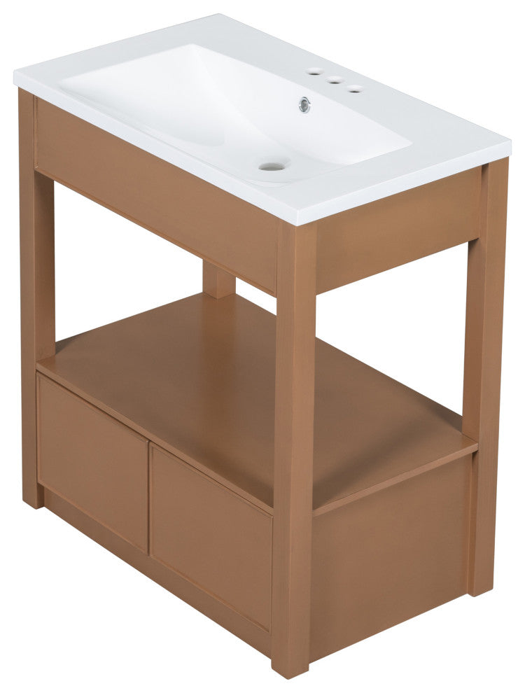 GDF Studio 30"W Vanity With Ceramic Sink, Open Shelf & Two Drawers, Brown
