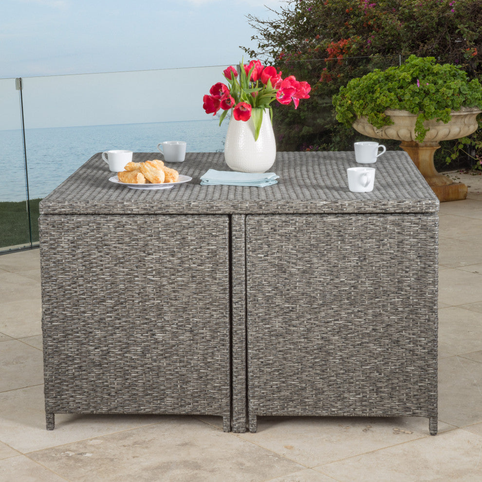 GDF Studio 5-Piece Calella Outdoor Dark Gray Wicker Dining Set