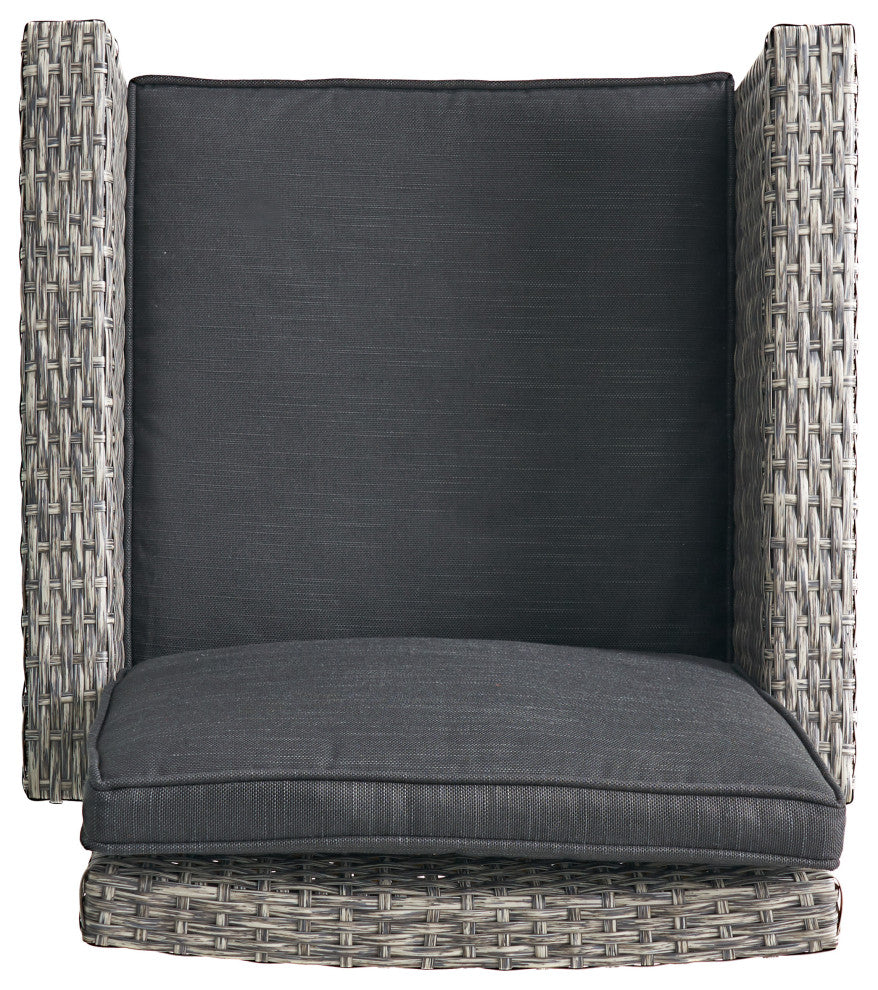 This outdoor bar set is ideal for any patio. Complete with four cushioned bar chairs, this set is sure to a staple of your patio. Made with wicker and an iron frame, this set will not only hold up against the elements, but will last you for years to come. Enjoy a peaceful dinner under the stars in your own backyard with this set.
