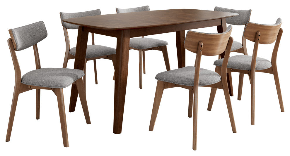 GDF Studio 7-Piece Mid-Century Dining Set, Table & 6 Chairs, Dark Gray/Walnut