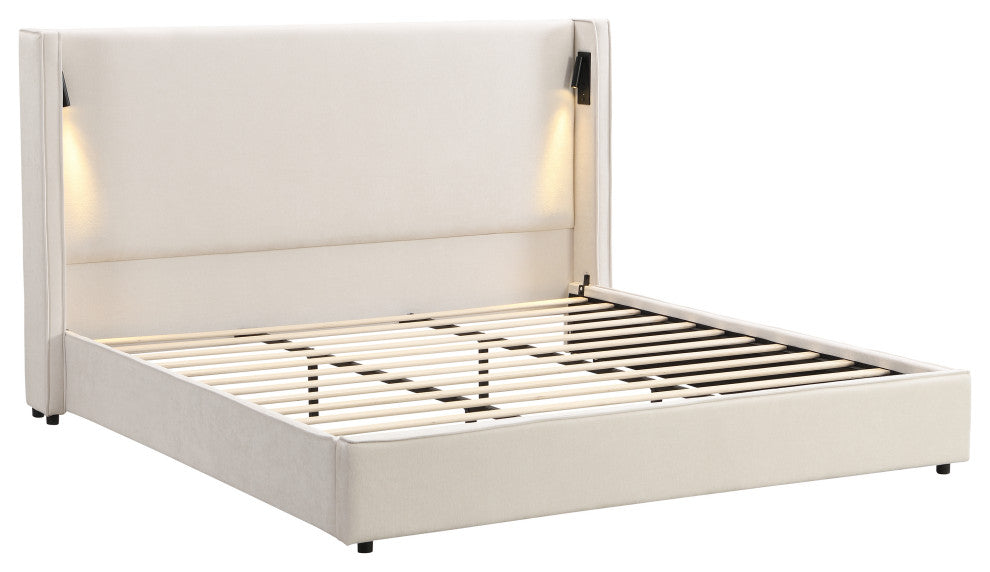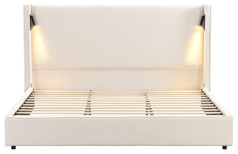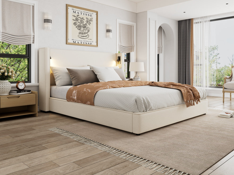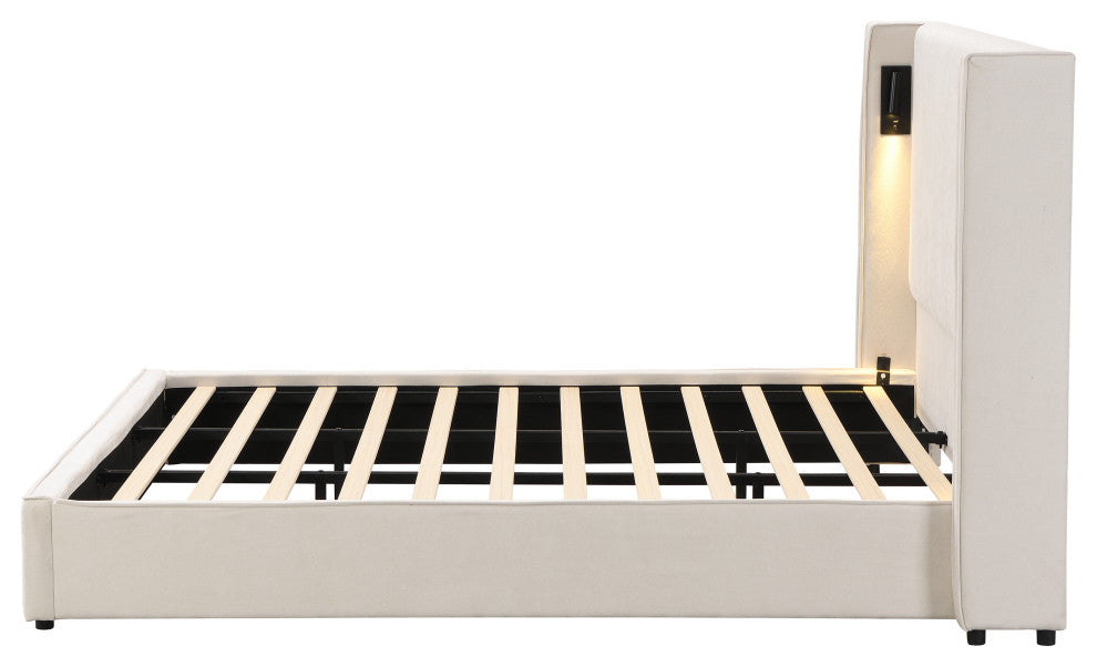 GDF Studio Fully-Upholstered Platform Bed With Reading Lamp & USB Port, King