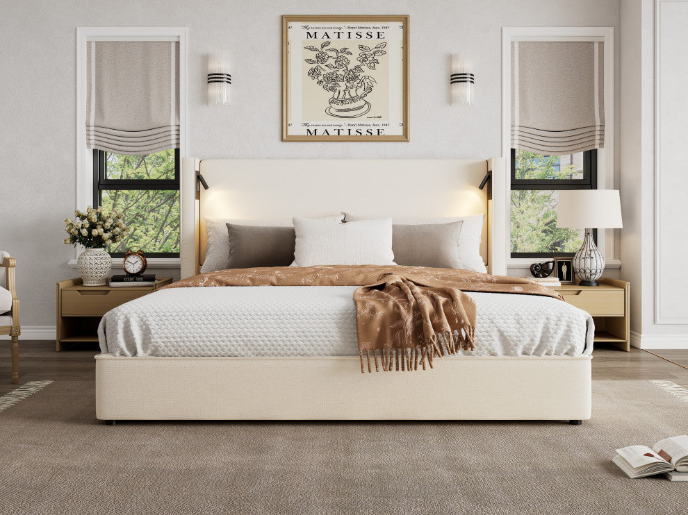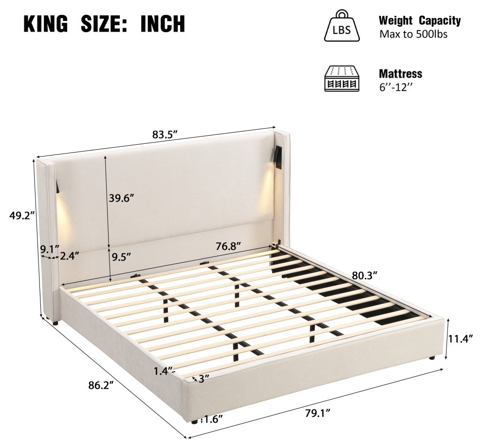 [Contemporary Elegance and Functionality] Featuring a wing-back headboard, retro-style bed legs, and soft fabric upholstery, this platform bed combines modern aesthetics with timeless charm to elevate your bedroom decor.