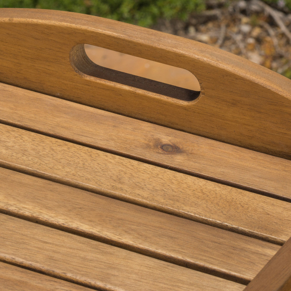 This bar cart is ideal for anyone looking to host with ease. Whether it''s bringing the cart to the dining table for an after dinner drink, or rolling it to the living room to be by your guests while you laugh and play. Or to simply take to your favorite reading chair to finish your favorite book. This bar cart makes any of your ideas come to life easily with its mobility and usefulness. With built in trays and three slots for bottles, it makes taking your bar with you easy. And with the indoor/outdoor material it is built in, you can take the cart from the house to the patio or yard.Features:Material: AcaciaFinish: Natural StainedEasy to assemble (tools and instructions included)Dimensions: 23.75" D x 35.75" W x 35.50" H