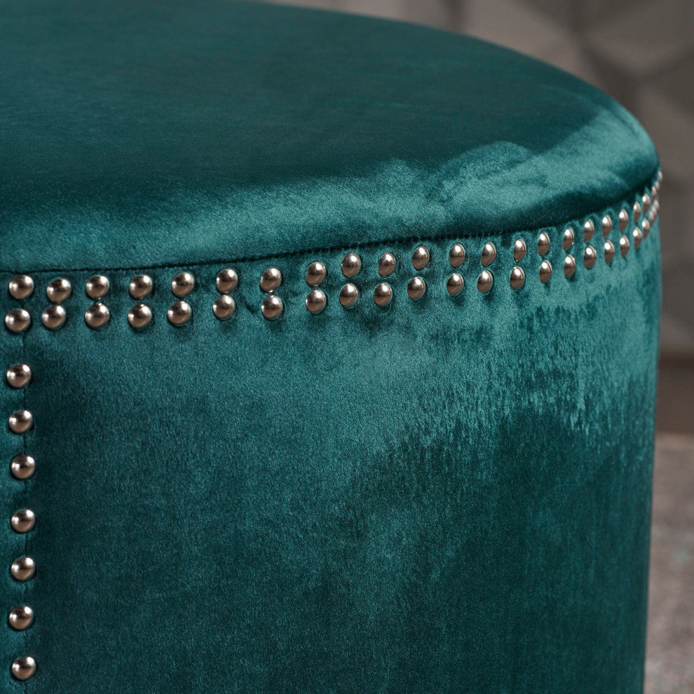 GDF Studio Jesper Studded New Velvet Ottoman, Teal