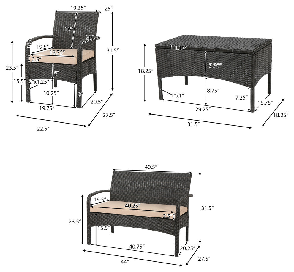 Loveseat Dimensions: 27.50 inches deep x 44.00 inches wide x 31.50 inches high