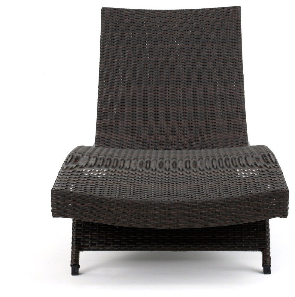 GDF Studio Lakeport Outdoor Wicker Adjustable Chaise Lounge With Navy Cushion